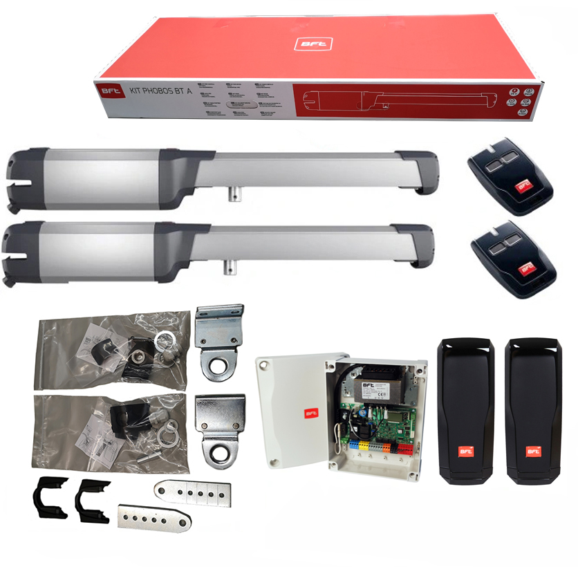 Zestaw automatyki do bramy dwuskrzydłowej BFT PHOBOS BT A40 przeznaczony jest do automatyzacji bram dwuskrzydłowych o maksymalnej długości do 4 m i ciężarze do 500 kg każdego ze skrzydeł. Siłowniki posiadają wbudowane regulowane krańcówki magnetyczne – brak potrzeby stosowania odbojów w podłożu.
